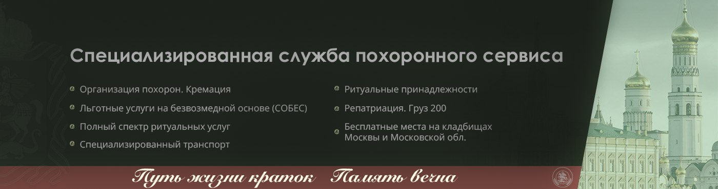 Мы знаем, как вам тяжело и больно в момент утраты. Поэтому сотрудники городской бюджетной службы по специализированному обслуживанию граждан Москвы и Московской области готовы сделать со своей стороны все для того, чтобы Вы могли оплакать близкого человека и не волноваться про организацию похорон.