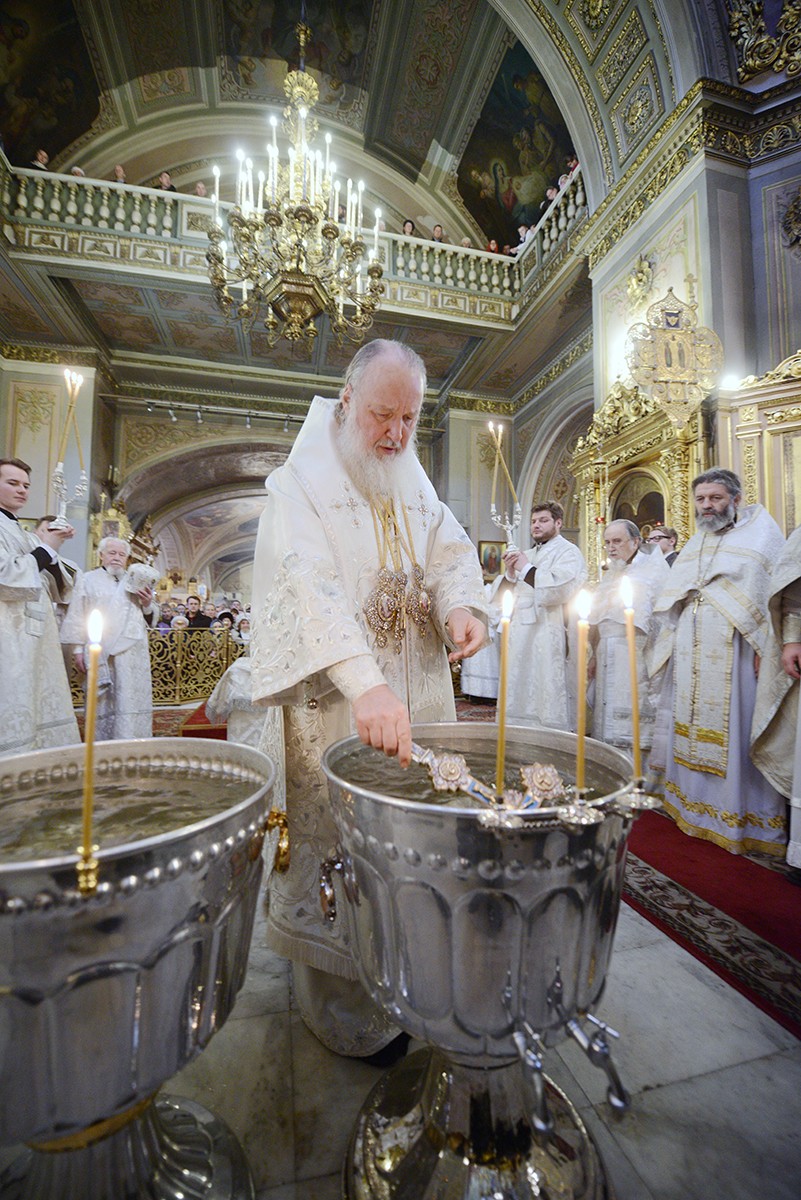 Когда св. Иоанн, Предотеча Господень, явился на берегах реки Иордана с проповедью о покаянии ввиду приближения царства Христова и крестил исповедовавших грехи свои, то пришел к нему Господь Iсус Христос и принял от него крещение в водах Иордана. Сначала Иоанн не хотел крестить Iсуса Христа, говоря: «Мне надобно креститься от Тебя, и Ты ли приходишь ко мне?» Но когда Господь сказал: «Оставь, ибо так надлежит нам исполнить всякую правду», – крестил Его, Когда же по крещению Господь выходил из воды, то отверзлись небеса, Дух Святой сошел на Него в виде голубя, и слышен был глас с неба: «Сей есть Сын Мой возлюбленный, в Котором Мое благоволение».